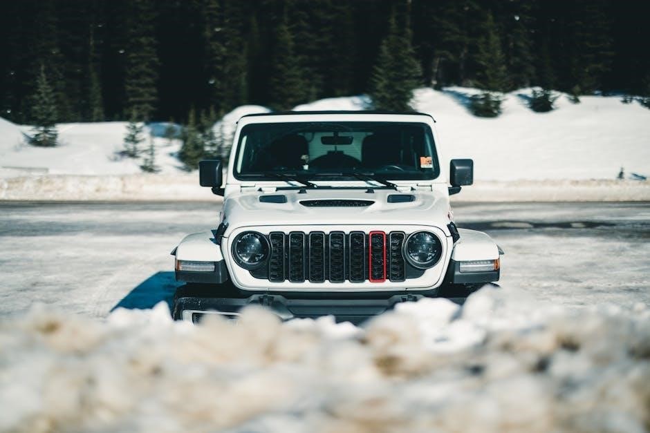 ‘4L’ activates four-wheel drive low range‚ providing maximum torque for challenging terrain such as steep hills or deep mud. ‘4L’ should only be used at low speeds. The electronic locking differentials‚ if equipped‚ further enhance traction by forcing both wheels on an axle to spin at the same rate. Always consult the full owner’s manual for detailed instructions and limitations regarding 4×4 system operation‚ ensuring safe and effective use in various conditions. Improper use can lead to component damage.