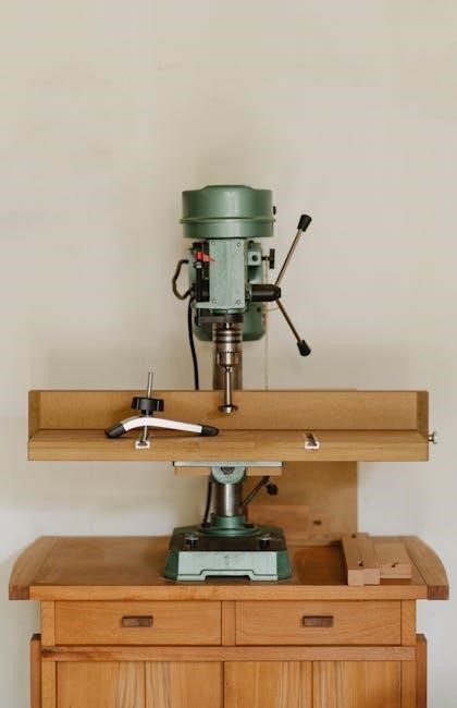 Drill presses‚ essential for precise hole creation‚ are detailed in manuals covering operation‚ safety‚ and maintenance․ These guides ensure accurate drilling across various materials․