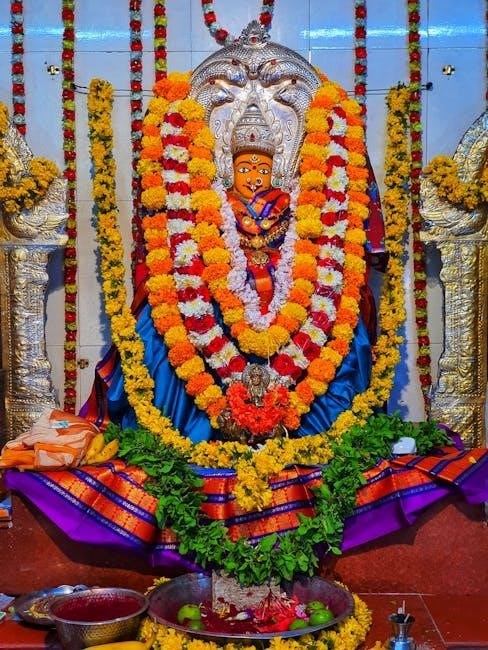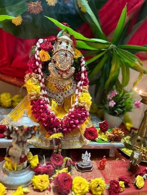 The Mahalakshmi Ashtakam is traditionally attributed to Indra, the king of the gods, as detailed within various Hindu scriptures. He composed this hymn seeking Goddess Lakshmi’s blessings to overcome challenges and restore prosperity. The stotra’s origins are deeply rooted in Vedic traditions, emphasizing the importance of devotion and prayer in attaining divine grace. Accessing the Mahalakshmi Ashtakam in Telugu PDF allows for a deeper understanding of its historical and spiritual context.