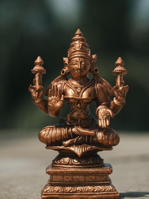 Accessing this shloka through a PDF allows for focused study and contemplation, revealing Lakshmi’s deeper connection to abundance in all its forms. It encourages devotees to seek blessings for overall flourishing, not solely monetary gains.